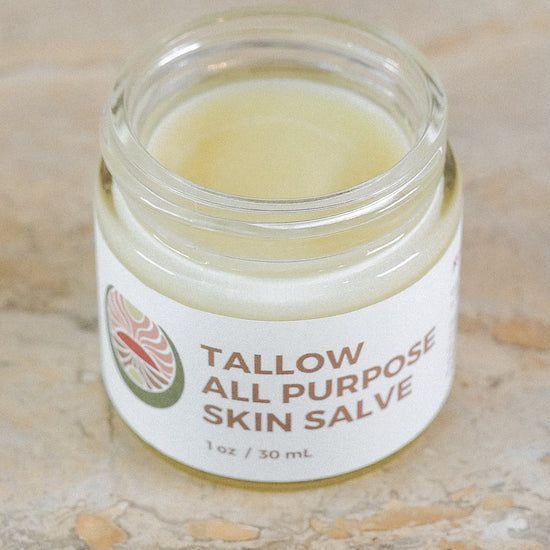 Rooted in tradition, grass-fed tallow is a vitamin-rich, bioavailable fat that mirrors the composition of our skin’s natural oils. Abundant in fat-soluble vitamins A, D, E, and K—nutrients rarely found in plant oils in such a perfectly balanced form—it deeply nourishes, restores, and protects. Naturally rich in anti-inflammatory conjugated linoleic acid (CLA) and antimicrobial palmitoleic acid, tallow supports skin healing, hydration, and resilience.